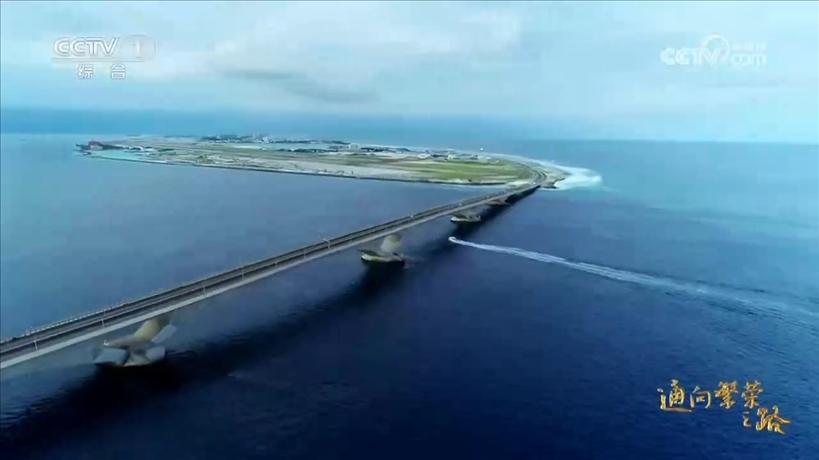 印度洋上,600多名建設(shè)者,不斷探索新技術(shù)方案,一個個世界級難題相繼被攻克。歷經(jīng)974天,架起了這個國家第一座跨海大橋,馬爾代夫人民夢想成真。