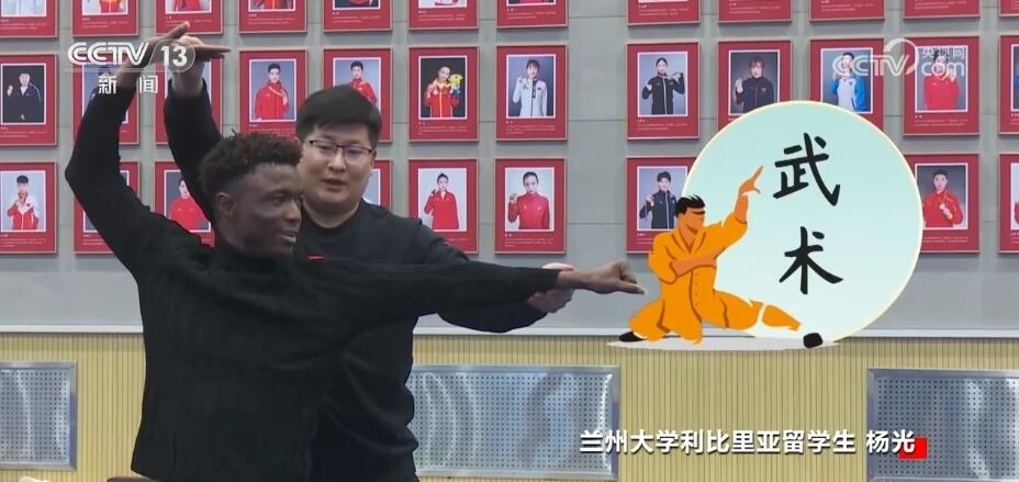 蘭州大學(xué)國際文化交流學(xué)院 利比里亞留學(xué)生 楊光:我已經(jīng)學(xué)中文一年半了,我喜歡中文,最喜歡武術(shù),我喜歡看很多中國的電影,特別是成龍的電影,因?yàn)樗膭幼骱芏唷?br>