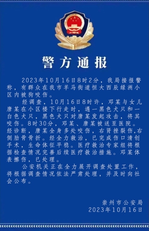 ·四川一小區(qū)兩大型犬撕咬兩歲半女童,致女童背部撕咬傷,腎部挫裂傷。警方:正全力展開調(diào)查處置工作。