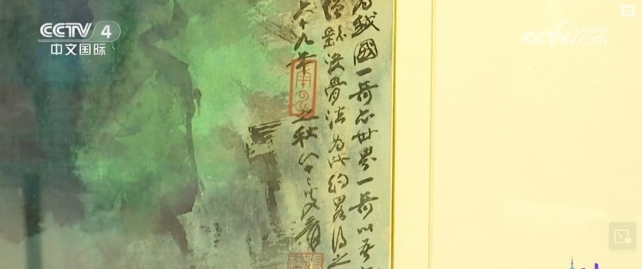 總臺(tái)央視記者 孫雨彤:這幅作品就是由張大千在1980年創(chuàng)作的《阿里山曉色》。張大千曾以“阿里山”為題材,創(chuàng)作出兩幀四尺整紙橫幅,這就是其中一件。畫(huà)上有題款“嘉義阿里山曉色為我國(guó)一奇,亦世界一奇”。