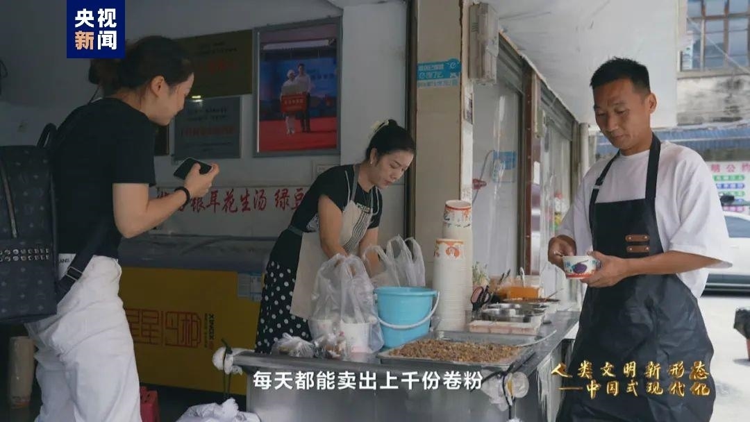 如今,董永恒的店里每天都能賣出上千份卷粉。卷粉掙錢(qián)、踢球圖樂(lè),口袋鼓起來(lái)、體質(zhì)強(qiáng)起來(lái)、日子美起來(lái)。