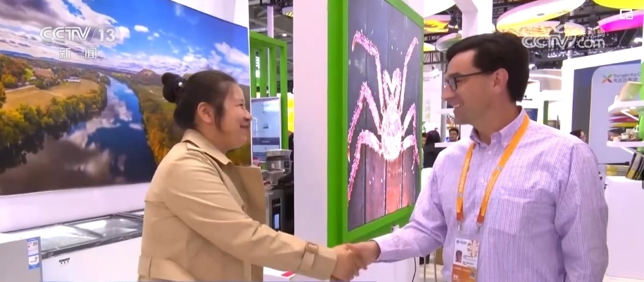 進(jìn)博會的最后一天,記者來到美國食品和農(nóng)產(chǎn)品館時,美國參展商克里斯依舊在緊張地和客戶對接洽談,此時距離閉幕只剩下不到6個小時。