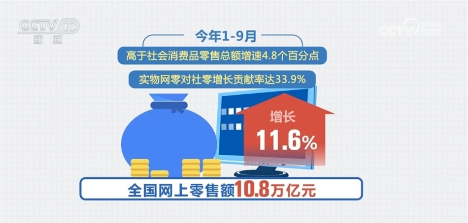 ?????? 據(jù)了解,我國零售市場的電商滲透率逐年走高,今年1—9月,全國網(wǎng)上零售額增長11.6%,高于社會消費品零售總額增速4.8個百分點,實物商品網(wǎng)上零售對社會消費品零售增長貢獻率達33.9%。