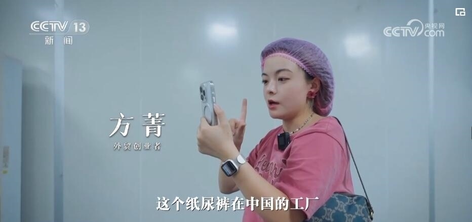 記者:現(xiàn)在方方(方菁)在給她的非洲客戶打視頻電話,來給她更直觀地看,這個紙尿褲在中國的工廠是怎么生產(chǎn)出來的。