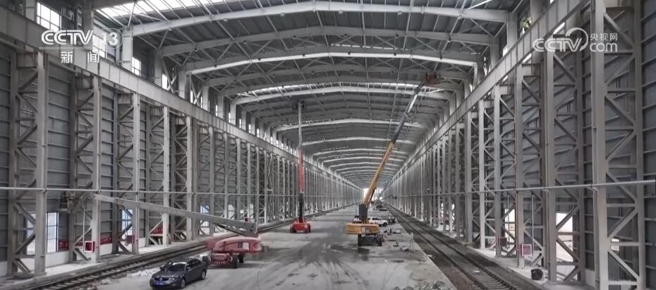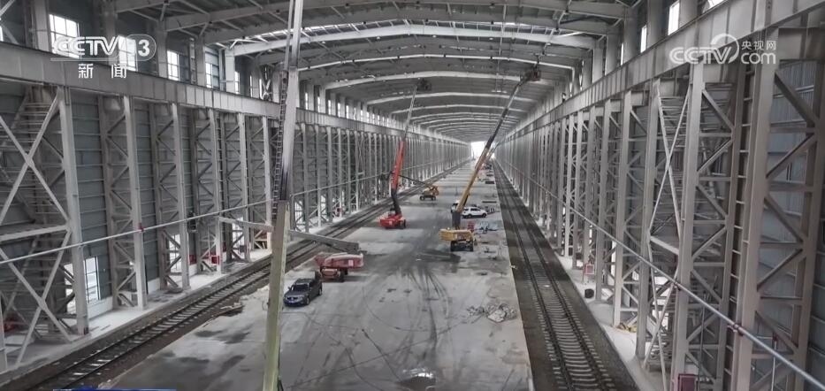 總臺(tái)記者 崔寧:在我的身后有一小一大、一舊一新兩座換裝庫(kù),它們主要是對(duì)入境的中歐班列進(jìn)行換裝。小的這座看起來(lái)也比較舊,它建于2008年,到目前為止已經(jīng)投用了整整15年。隨著“一帶一路”倡議的不斷推進(jìn),現(xiàn)在經(jīng)阿拉山口口岸出入境的中歐班列數(shù)量已經(jīng)由最初月均3.5列增加到日均17列。所以,它的存在也已經(jīng)遠(yuǎn)遠(yuǎn)不能滿(mǎn)足現(xiàn)在發(fā)展的需求,也正因?yàn)槿绱耍谒呐赃呌中陆艘蛔蟮膿Q裝庫(kù),它建成投用之后將取而代之成為目前亞洲最大的室內(nèi)集裝箱換裝庫(kù)。