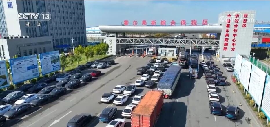 總臺(tái)記者 崔寧:看我的腳下,這邊是中國(guó)的土地,這邊是哈薩克斯坦的土地。人們?cè)谶@里可以一腳踏兩國(guó),自由地往來(lái)出入,不僅可以旅游購(gòu)物、貿(mào)易洽談,還能享受免稅政策。