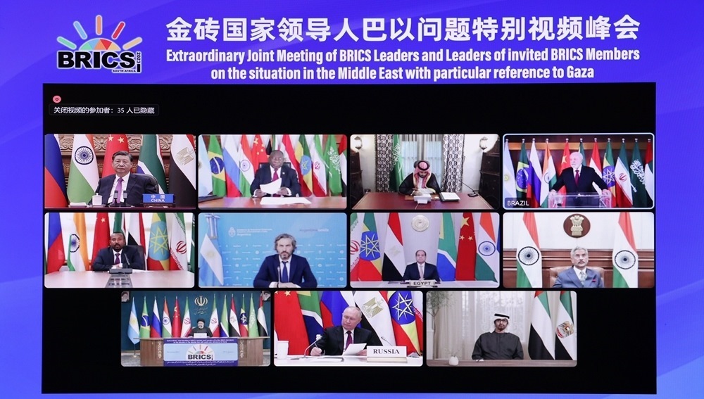 21日的特別視頻峰會(huì),沙特、埃及、阿聯(lián)酋、阿根廷、伊朗、埃塞俄比亞6個(gè)即將于2024年1月1日起正式成為金磚成員的國(guó)家也應(yīng)邀出席。