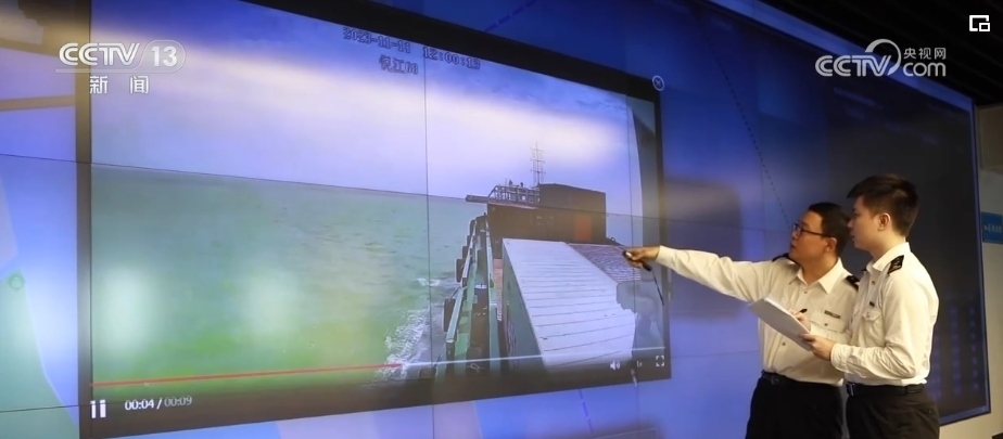 在深圳海關(guān),關(guān)員們正在通過系統(tǒng)實(shí)時查看裝載“大灣區(qū)組合港”貨物的駁船途中運(yùn)輸情況。系統(tǒng)接入了多方數(shù)據(jù),能夠?qū)崿F(xiàn)組合港貨物全流程“數(shù)據(jù)流、軌跡流、視頻流”管控,以“制度+科技”加強(qiáng)“大灣區(qū)組合港”這一創(chuàng)新改革項目的監(jiān)管手段。