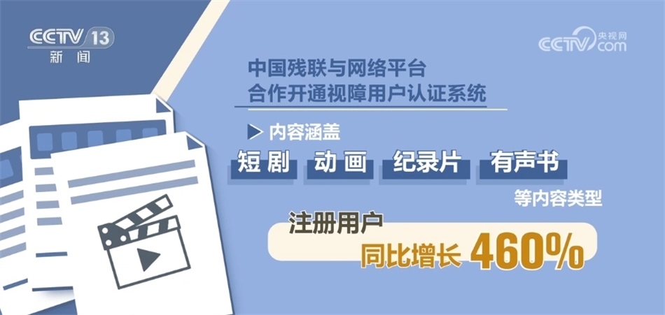 數(shù)據(jù)顯示,中國殘聯(lián)與網(wǎng)絡(luò)平臺合作開通視障用戶認證系統(tǒng)一年以來,無障礙影視作品已超2000部(集),同比增長超400%,內(nèi)容涵蓋短劇、動畫、紀錄片、有聲書等內(nèi)容類型,注冊用戶同比增長460%。