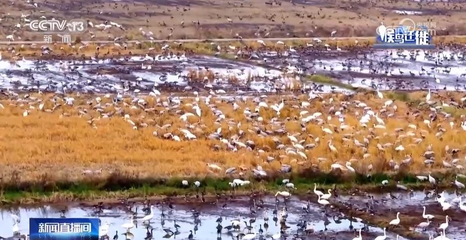 鄱陽湖也是麋鹿的棲息地,這是總臺拍攝團(tuán)隊(duì)用超高速攝像機(jī)記錄下的段麋鹿在水中奔跑的畫面。隨著大批候鳥的到來,冬日的鄱陽湖,生物多樣性更加豐富,處處可見生態(tài)美景。