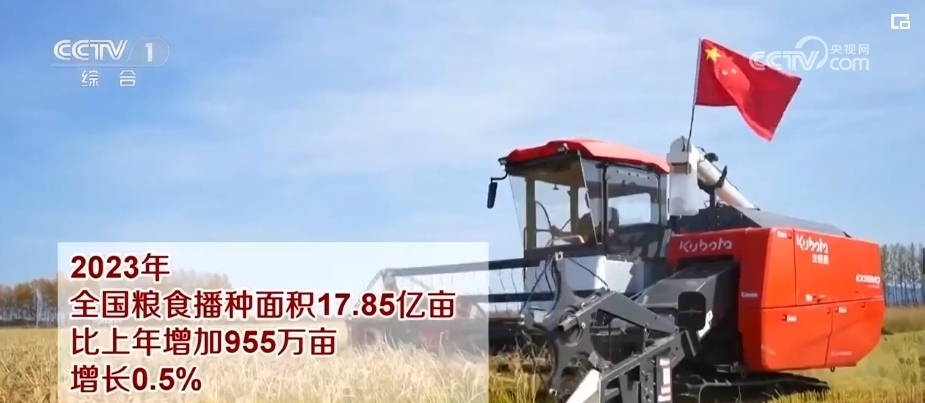 2023年,全國糧食播種面積為17.85億畝,比上年增加955萬畝,增長(zhǎng)0.5%。其中,谷物播種面積14.99億畝,比上年增加986萬畝,增長(zhǎng)0.7%。