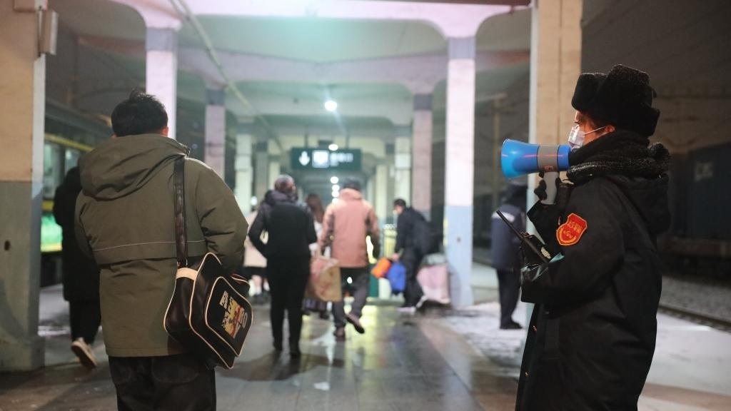 山西大同站鐵路工作人員在疏導(dǎo)進出站旅客。(中國鐵路太原局集團有限公司供圖)