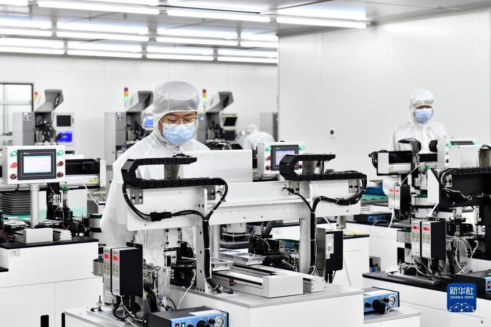 ?在山東省日照高新技術(shù)產(chǎn)業(yè)開(kāi)發(fā)區(qū)智慧微電產(chǎn)業(yè)園,工作人員在生產(chǎn)濾波器(2023年6月29日攝)。新華社記者 郭緒雷 攝