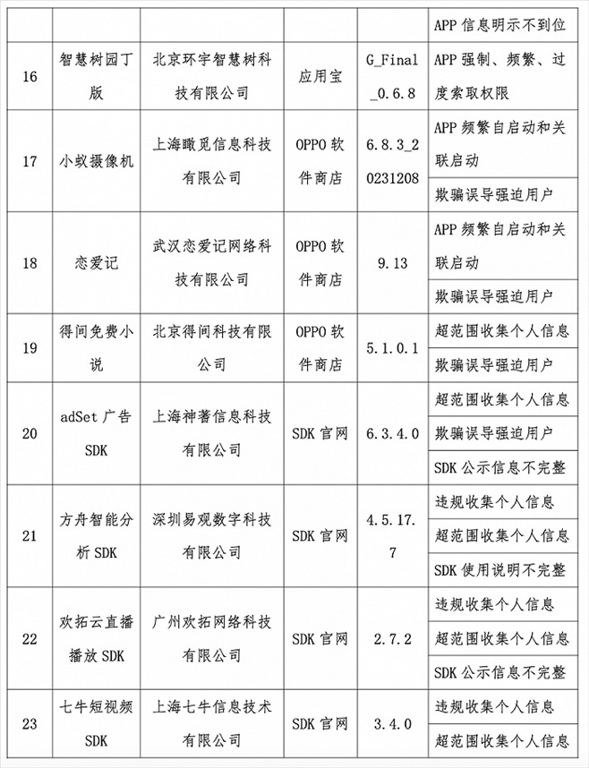 央視網(wǎng)消息:據(jù)工信部網(wǎng)站消息,近期,工信部組織第三方檢測機(jī)構(gòu)對群眾關(guān)注的實用工具、本地生活、網(wǎng)絡(luò)游戲等移動互聯(lián)網(wǎng)應(yīng)用程序(APP)及第三方軟件開發(fā)工具包(SDK)進(jìn)行檢查。發(fā)現(xiàn)24款A(yù)PP、SDK存在侵害用戶權(quán)益行為,現(xiàn)予以通報。