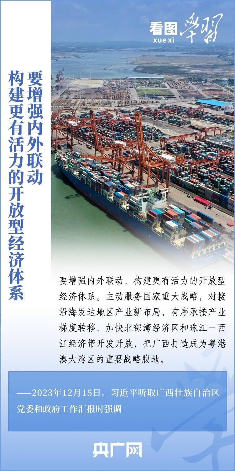 12月14日至15日,剛剛結(jié)束對(duì)越南進(jìn)行國(guó)事訪問(wèn)的習(xí)近平總書記在廣西考察并聽取廣西壯族自治區(qū)黨委和政府工作匯報(bào)。總書記對(duì)廣西發(fā)展提出殷切希望,強(qiáng)調(diào)廣西要發(fā)揮自身優(yōu)勢(shì),以鑄牢中華民族共同體意識(shí)為主線,解放思想、創(chuàng)新求變,向海圖強(qiáng)、開放發(fā)展,努力在推動(dòng)邊疆民族地區(qū)高質(zhì)量發(fā)展上展現(xiàn)更大作為,奮力譜寫中國(guó)式現(xiàn)代化廣西篇章。一起來(lái)學(xué)習(xí)!