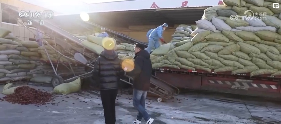 在楊安鎮(zhèn)這家加工香辛料的企業(yè),我們看到負責人蘇海濤正在卸載剛從越南新進口來的黑胡椒。