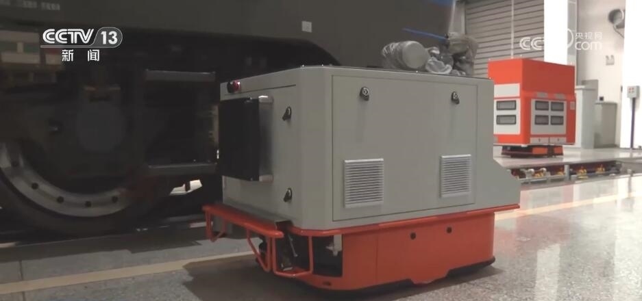 總臺記者 薛東海:列車途徑沿線隧道眾多,從而行駛過程當中會積攢大量煤灰、粉塵,影響列車的安全。也意味著當列車行駛到一段距離之后,就要來到庫區(qū)進行維修和除塵工作。曾經(jīng)這項主要是依賴于人工,需要四名工人來到溝底進行吹除作業(yè)。到了今年,這樣的工作被我旁邊的這個“小家伙”智能機器人取代了。