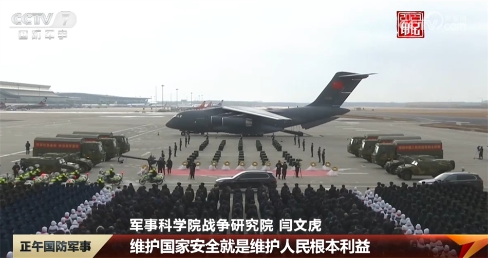 守護(hù)國防安全,我們每個人都是衛(wèi)士。今年11月,我們第十次迎回了抗美援朝保家衛(wèi)國的烈士遺骸。11月23日上午,遼寧沈陽桃仙國際機場,兩架殲-20戰(zhàn)機護(hù)航運-20運輸機呼嘯而來,運-20降落,緩緩?fù)ㄟ^水門,以最高禮儀致敬英烈。