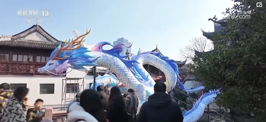 在上海,迎新春的傳統(tǒng)活動豫園燈會正在緊鑼密鼓籌備中。在豫園商城的凝暉路上,名為“一夜魚龍舞”的主題燈組已經(jīng)亮燈。抬眼望去,多彩的魚群匯成游龍回旋的姿態(tài),游走在飛檐斗拱之間,呈現(xiàn)出一片繁華景象。