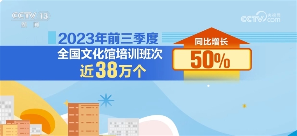 據(jù)統(tǒng)計,2023年前三季度公共圖書館總流通人次同比增長55.2%;2023年前三季度,全國文化館培訓(xùn)班次近38萬個,同比增長50%;文化館(群藝館)服務(wù)人次同比增長142.7%。