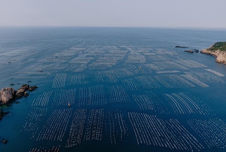 嵊泗縣萬(wàn)畝貽貝海上基地。嵊泗縣海洋與漁業(yè)局供圖。