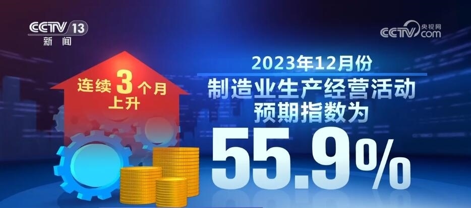 數(shù)據(jù)顯示,2023年12月份,制造業(yè)生產(chǎn)經(jīng)營活動預(yù)期指數(shù)為55.9%,連續(xù)3個(gè)月上升,表明制造業(yè)企業(yè)對市場發(fā)展信心不斷增強(qiáng)。2023年12月份,高技術(shù)制造業(yè)和裝備制造業(yè)采購經(jīng)理指數(shù)分別為50.3%和50.2%,繼續(xù)保持?jǐn)U張。