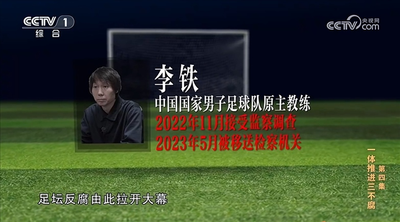 【解說(shuō)詞】李鐵是本次專案第一個(gè)接受監(jiān)察調(diào)查并被留置的人員,事實(shí)證明,這個(gè)切入點(diǎn)的選擇是非常精準(zhǔn)的。他既在多家俱樂(lè)部擔(dān)任過(guò)教練,又曾擔(dān)任中國(guó)國(guó)家男子足球隊(duì)主教練,在足球領(lǐng)域關(guān)系盤(pán)根錯(cuò)節(jié),以他為突破口縱深挖掘、橫向拓展,牽出了從聯(lián)賽到國(guó)家隊(duì)、從俱樂(lè)部到足協(xié)的若干涉嫌違紀(jì)違法犯罪人員,以及種種黑幕和制度漏洞。