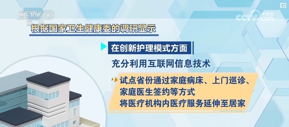 在創(chuàng)新護理模式方面,充分利用互聯(lián)網(wǎng)信息技術,試點省份通過家庭病床、上門巡診、家庭醫(yī)生簽約等方式,將醫(yī)療機構內醫(yī)療服務延伸至居家。目前,共計有3000多個醫(yī)療機構,可以上門為居家老年人提供7大類60多項醫(yī)療護理服務項目,減輕了患者和家屬的負擔。