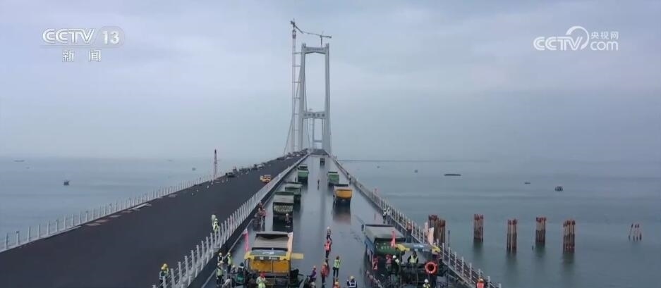 “國家卓越工程師稱號獲得者 深中通道總工程師 宋神友:深中通道的整個鋼橋面有38萬平方,也是世界最大規(guī)模采用雙層熱拌環(huán)氧瀝青的。對于像深中通道這樣的高溫、高濕和超大交通量的這樣一個交通環(huán)境來講,它是個世界性的難題。