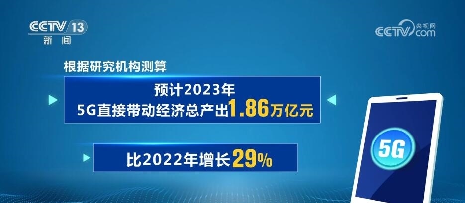 截至2023年底,我國5G移動電話用戶達8.05億戶。根據(jù)研究機構測算,預計2023年,5G直接帶動經(jīng)濟總產(chǎn)出1.86萬億元,比2022年增長29%。