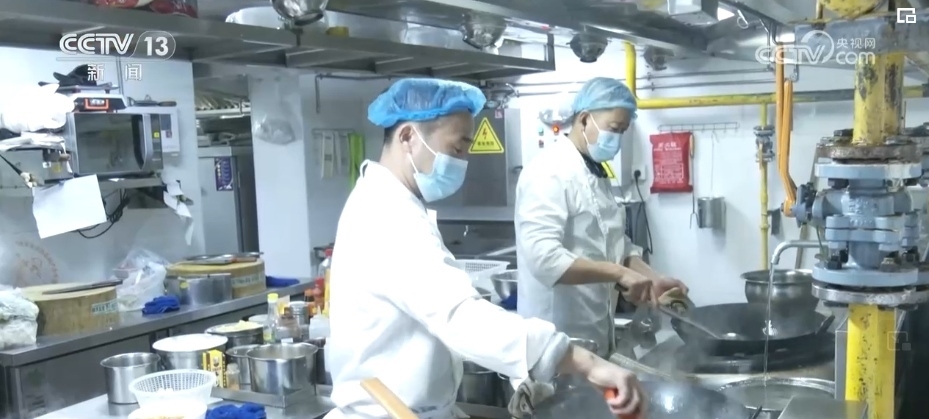 中午不到11時(shí),街道的助老餐廳忙碌起來。工作人員一邊忙著炒菜,一邊還要打包為不方便出門的老人送外賣。