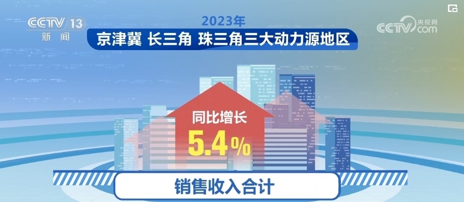 2023年,京津冀、長三角、珠三角三大動力源地區(qū)經(jīng)濟(jì)總體呈現(xiàn)較快發(fā)展態(tài)勢,銷售收入合計同比增長5.4%,占全國比重提高至54.1%,較2022年提高0.3個百分點(diǎn),帶動作用持續(xù)增強(qiáng)。