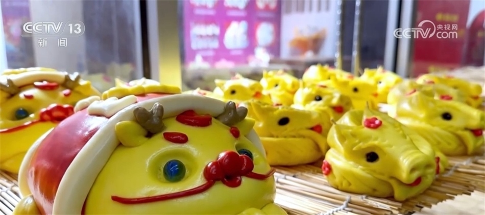 除了賞燈,龍帽、龍燈籠等龍年元素的商品也被市民爭相搶購,此外,不少餐飲店還推出了龍?jiān)煨偷母恻c(diǎn),受到食客歡迎。