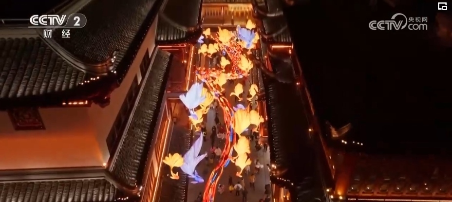 2024年,豫園燈會(huì)推出了造型各異的龍燈組,搭建難度為歷年最大的一次。以“一夜魚龍舞”燈組為例,這組燈由400多條“小魚燈”組成,匯聚成一條游龍,寓意“魚化龍”,還原辛棄疾《青玉案·元夕》中“一夜魚龍舞”的場景。