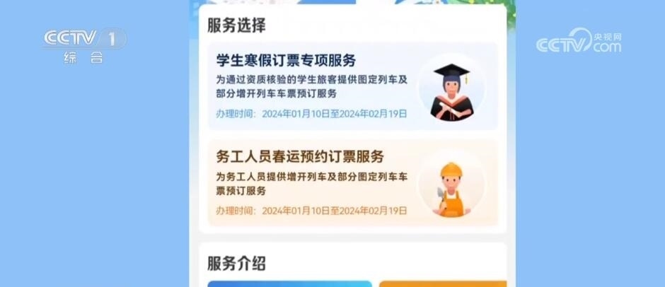 今年春運(yùn),鐵路部門推出預(yù)約購(gòu)票和預(yù)填購(gòu)票兩項(xiàng)購(gòu)票新方式,預(yù)約購(gòu)票功能專門針對(duì)學(xué)生和務(wù)工人員。符合條件的學(xué)生旅客(已通過(guò)學(xué)生優(yōu)惠資質(zhì)核驗(yàn)且有剩余優(yōu)惠乘車次數(shù))可通過(guò)“學(xué)生寒假訂票專項(xiàng)服務(wù)”專區(qū)預(yù)約購(gòu)買春運(yùn)期間的火車票。已通過(guò)實(shí)名制核驗(yàn)的務(wù)工人員可通過(guò)“務(wù)工人員春運(yùn)預(yù)約訂票服務(wù)”專區(qū)預(yù)約購(gòu)買春運(yùn)期間火車票。
