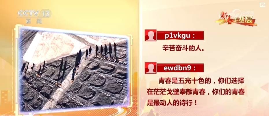 為夢想打拼、在戈壁灘上唱響青春之歌、在風(fēng)雪中守護溫暖,這些在《新春走基層》系列報道中講述的故事 打動了許多網(wǎng)友。有網(wǎng)友說:“喜歡這種記者深入走基層的片子!”也有網(wǎng)友說:“這才是我們應(yīng)該追的星?!?br>