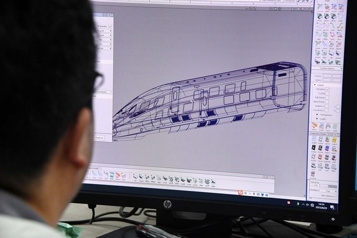 2023年8月29日,中車青島四方設(shè)計(jì)部門工作人員在進(jìn)行車輛框架設(shè)計(jì)。新華社記者 李紫恒攝