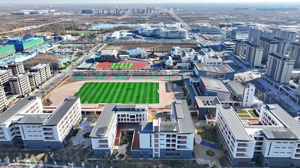 雄安新區(qū)啟動區(qū)的北京四中雄安校區(qū)和雄安史家胡同小學(xué)(無人機(jī)照片)。2023年11月30日新華社記者牟宇 攝