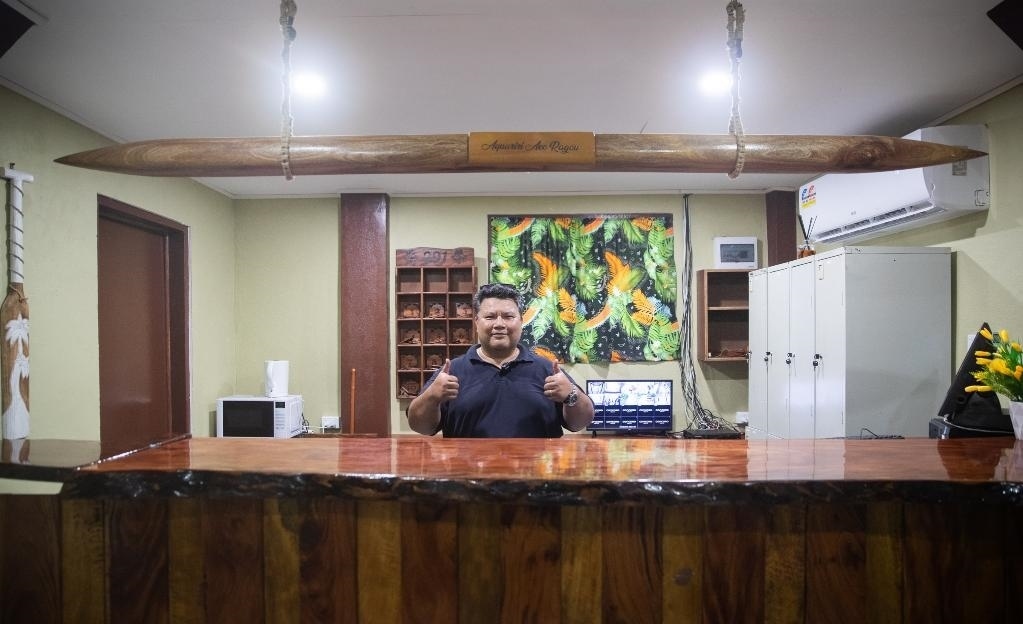 2月2日,客棧老板丹尼爾在瑙魯島東南部的“阿夸里里”客棧內(nèi)。