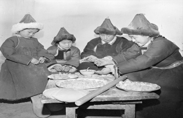 1981年,內(nèi)蒙古呼倫貝爾牧民高高興興包餃子過(guò)春節(jié)。