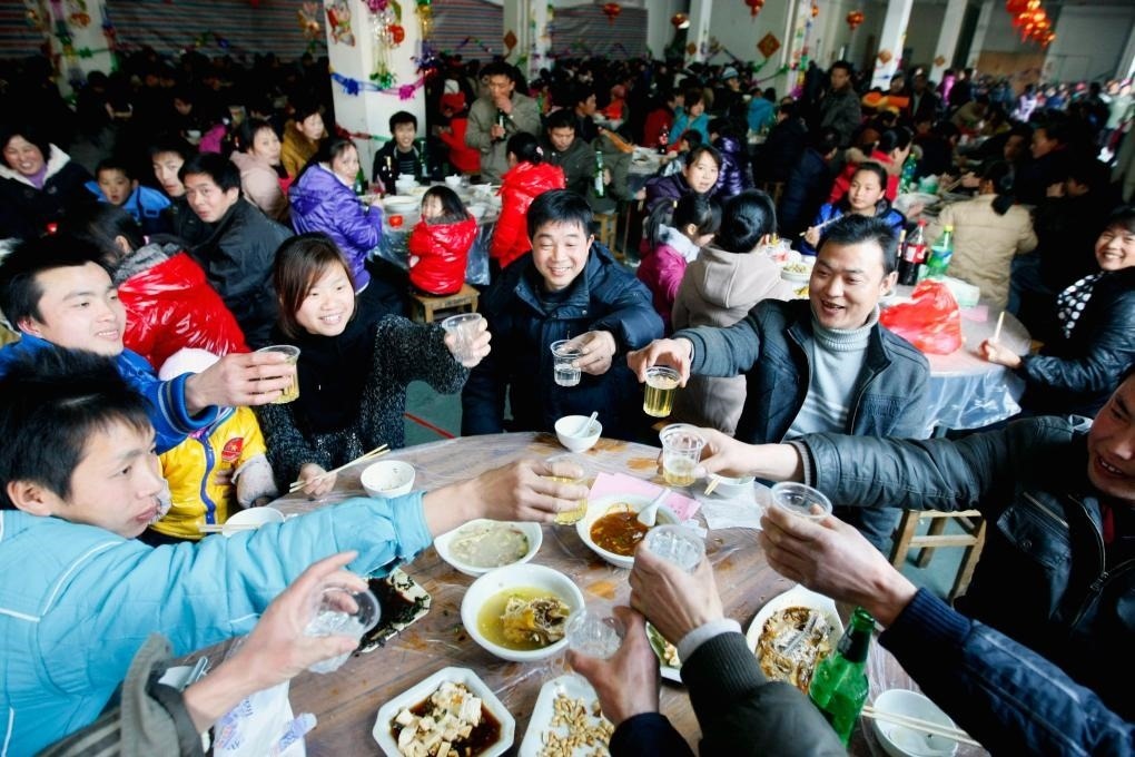 2011年2月2日,浙江諸暨一家公司準(zhǔn)備了豐盛的年夜飯,招待800多名沒(méi)有回家過(guò)年的員工及其家屬,歡聚一堂共迎新年。