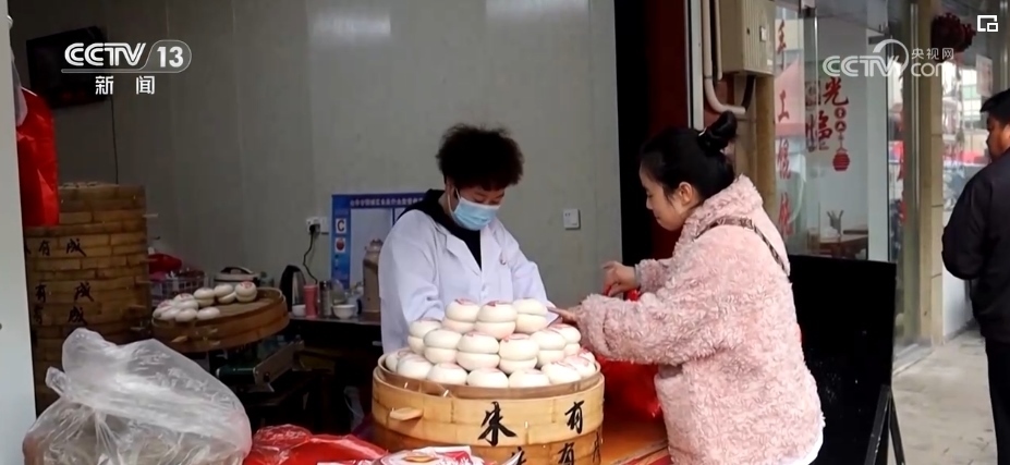 對(duì)于當(dāng)?shù)厝藖碚f,買“紅印饅頭”的日子也就是闔家團(tuán)聚的日子。一大桌子的年夜飯,“紅印饅頭”是壓軸菜,不少市民專程前來備年貨。
