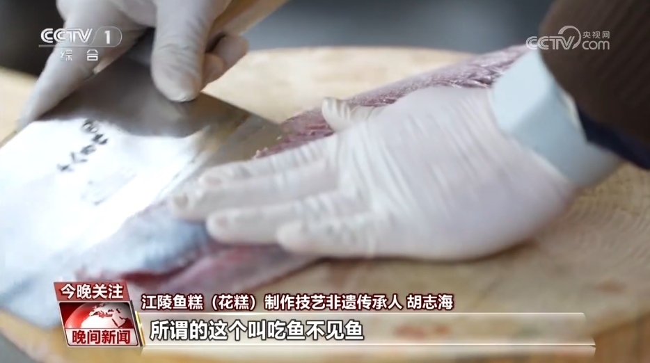 江陵魚(yú)糕(花糕)制作技藝非遺傳承人 胡志海:(做魚(yú)糕)一定要選擇草魚(yú),因?yàn)椴蒴~(yú)比白鰱肉質(zhì)上要嫩一點(diǎn),同時(shí)它的腥味是比白鰱要淡很多。