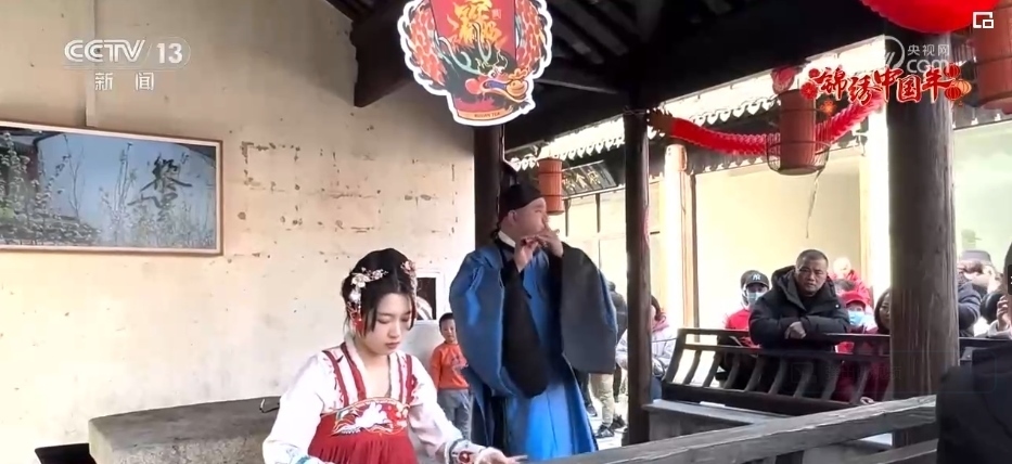 春節(jié)期間,伴隨著陣陣《茉莉花》的悠揚(yáng)樂(lè)聲,在江南水鄉(xiāng)黎里古鎮(zhèn)的迎恩坊,游客市民欣賞演奏團(tuán)隊(duì)奏響的新年歡樂(lè)樂(lè)章。石板道兩旁都換上了喜慶的紅色裝飾,糖畫(huà)攤、丟圈兒游戲的攤位前擠滿(mǎn)了躍躍欲試的人群。這幾天,黎里古鎮(zhèn)已經(jīng)迎來(lái)超過(guò)5萬(wàn)名游客,較2023年同期翻了兩番。
