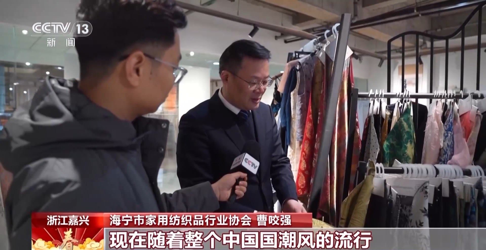 海寧市家用紡織品行業(yè)協(xié)會 曹咬強(qiáng):這款面料主要是供應(yīng)在意大利市場上,這個色系的面料主要供應(yīng)在美國市場上?,F(xiàn)在隨著整個中國國潮風(fēng)的流行,特別是在東南亞市場,他們每次下訂單都是60萬米、80萬米。
