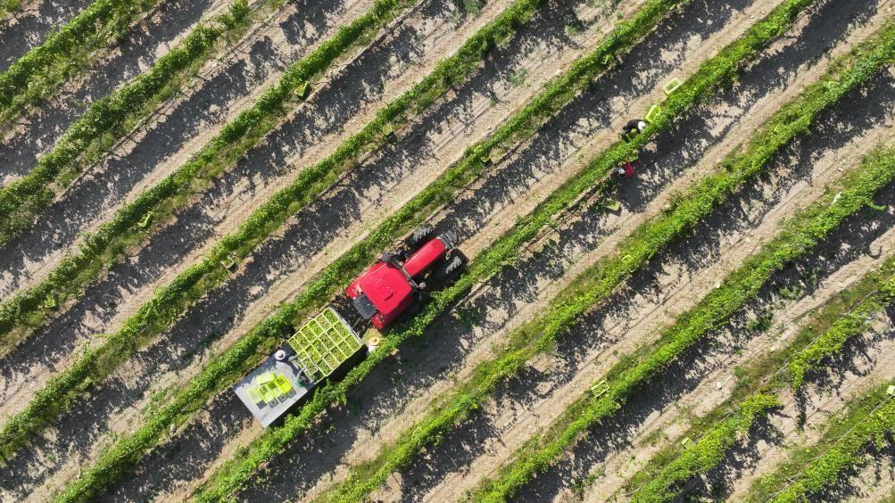 2023年9月,隨著寧夏賀蘭山東麓種植的貴人香、霞多麗等釀酒葡萄品種陸續(xù)成熟,當(dāng)?shù)鼐魄f迎來(lái)釀酒季。新華社記者 王鵬 攝