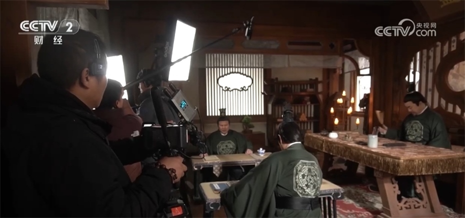 完善的場景類型滿足了各式劇組的拍攝需求,也縮減了時間成本。隨著大量微短劇劇組的入駐,橫店的演員也有了更多演出機會。