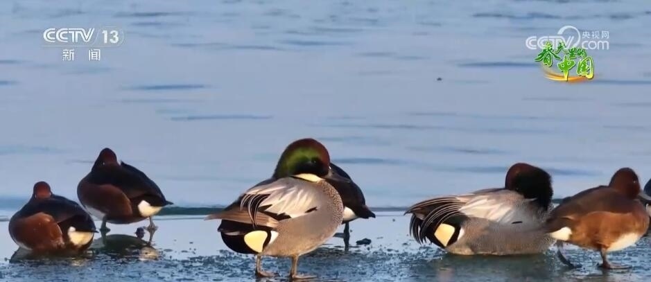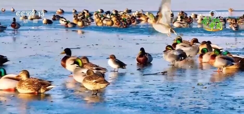 隨著天氣轉(zhuǎn)暖,山東泰安東平湖迎來了4000余只綠頭鴨、斑嘴鴨等水鳥,其中還有國家一級保護(hù)動(dòng)物青頭潛鴨。它們有的在還沒融化的冰面上休息,有的在初融的水面上蕩漾玩耍,十分愜意。近年來,東平湖及周邊地區(qū)的生態(tài)環(huán)境得到了整體改善和提升,這里成為候鳥遷徙的重要停歇地和中轉(zhuǎn)站。