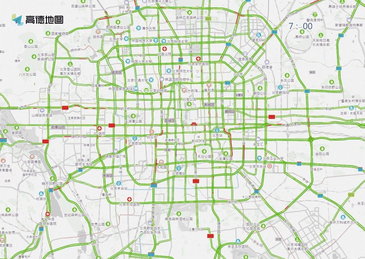 ? ? ? ?工作日白天時段,預計兒童醫(yī)院、兒研所、北京醫(yī)院、西苑醫(yī)院、復興醫(yī)院、北醫(yī)三院、同仁醫(yī)院、積水潭醫(yī)院等醫(yī)院門前及周邊道路車流量較大,高峰時段為7至13時。