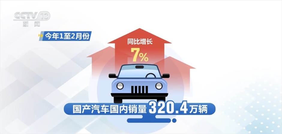 數(shù)據(jù)顯示,今年1至2月份,國產(chǎn)汽車國內(nèi)銷量320.4萬輛,同比增長7%。其中,國產(chǎn)新能源汽車國內(nèi)銷量102.5萬輛,同比增長34.3%。專家指出,從1至2月份運行情況看,汽車產(chǎn)銷的總體保持平穩(wěn),同比增速呈現(xiàn)較快的增長,預計全年增速將呈現(xiàn)前高后低的發(fā)展勢態(tài)。
